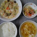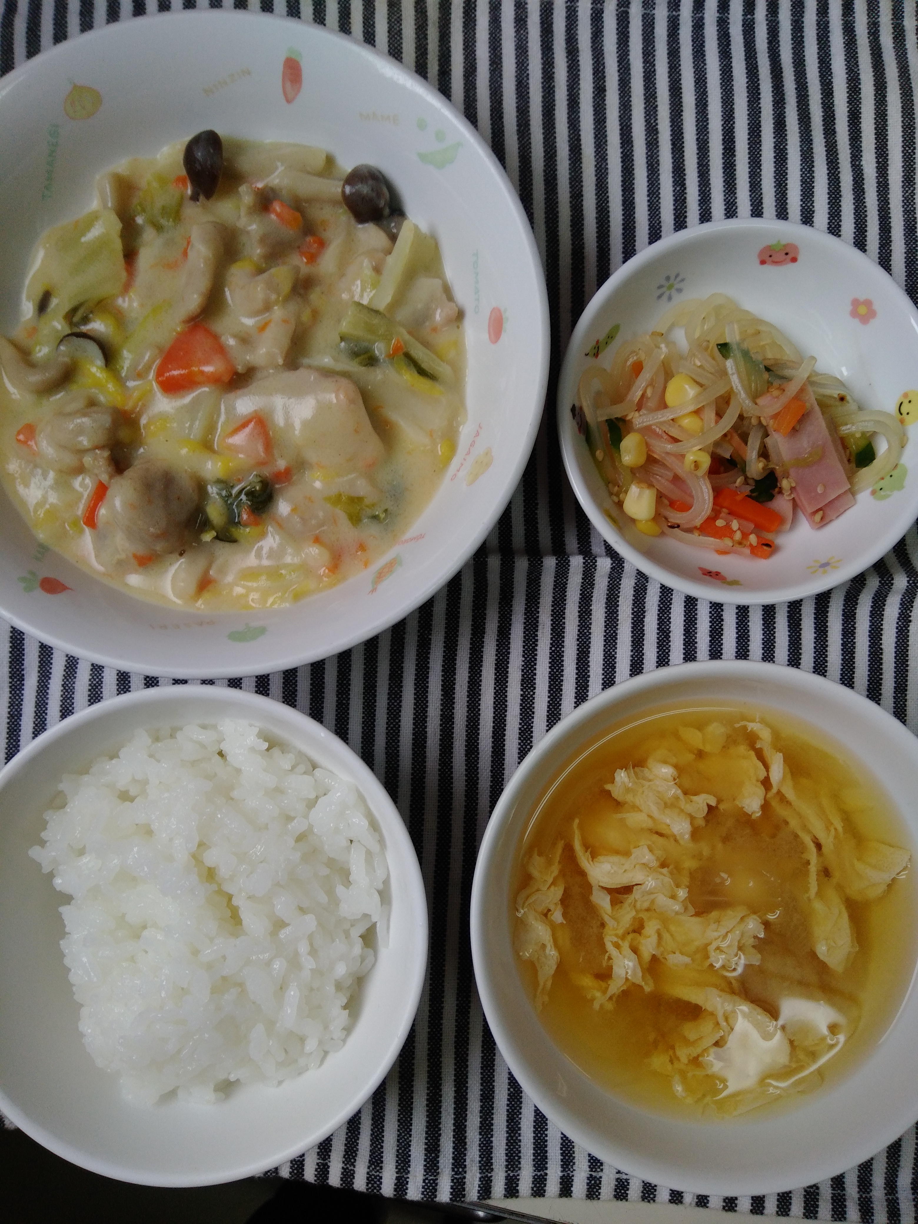 ご飯 白菜のクリーム煮 春雨サラダ みそ汁