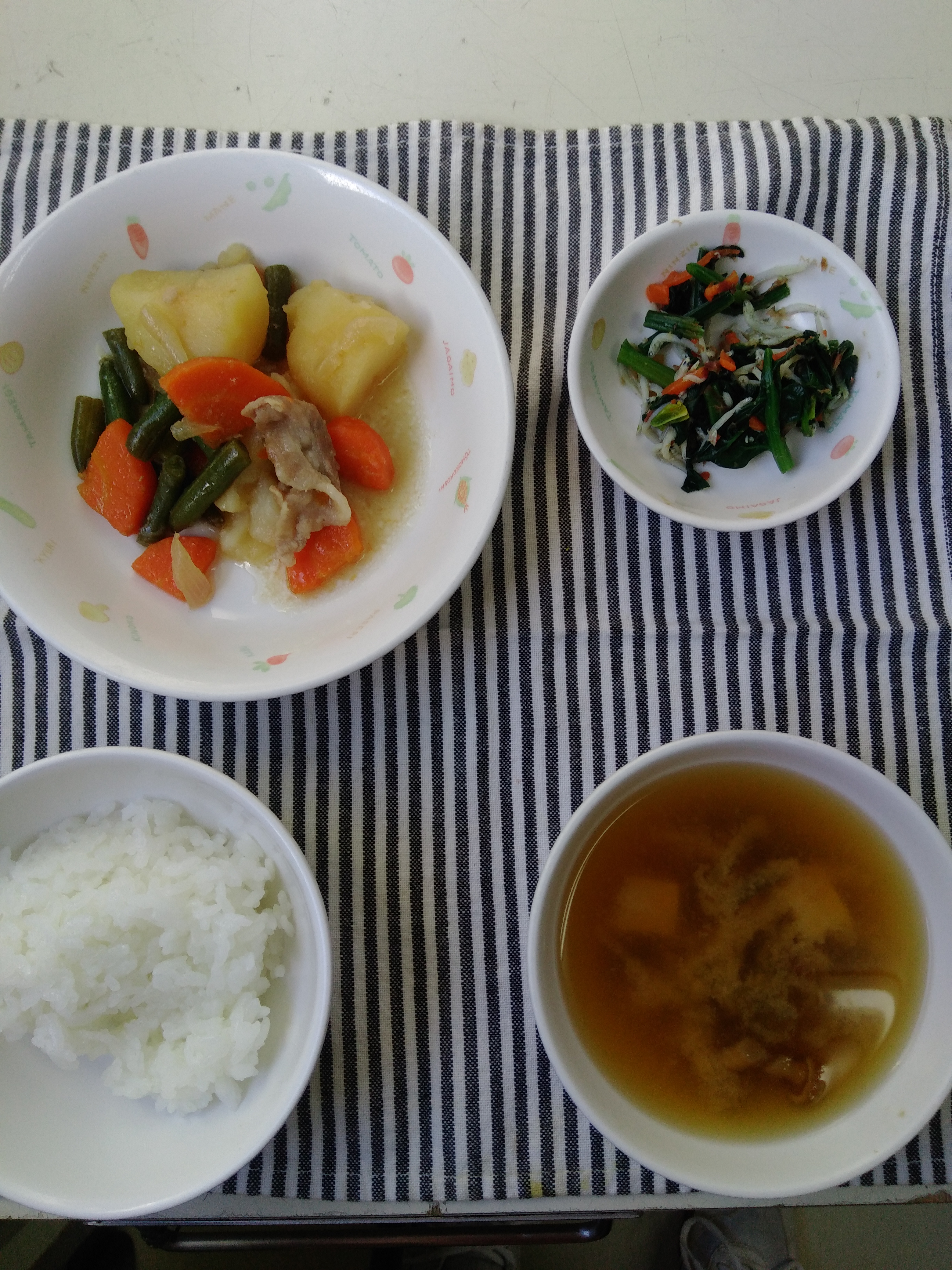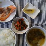 ご飯 焼魚 切り昆布煮物 みそ汁 果物