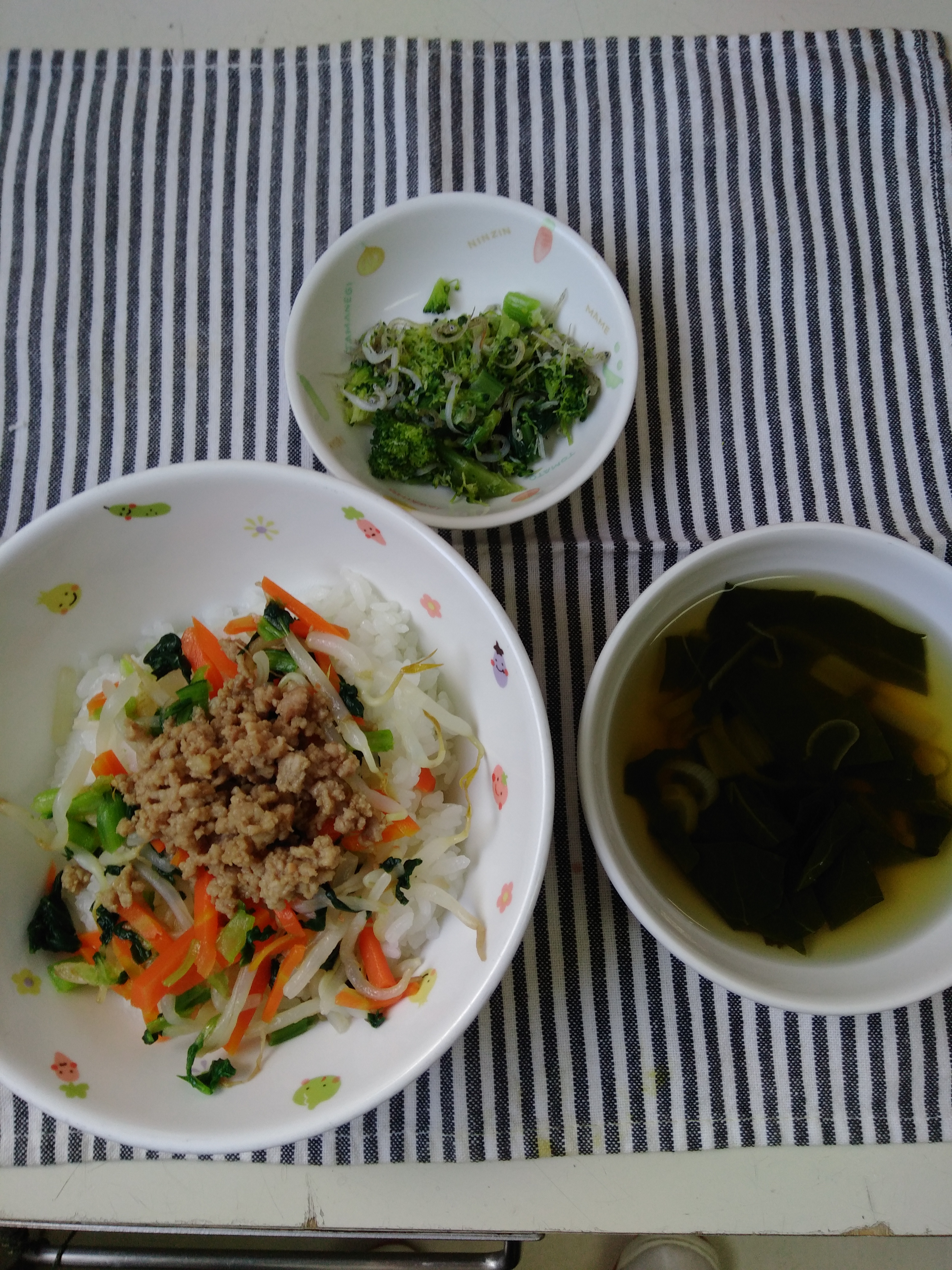ビビンバ丼 ブロッコリーしらす和え わかめスープ