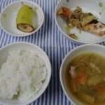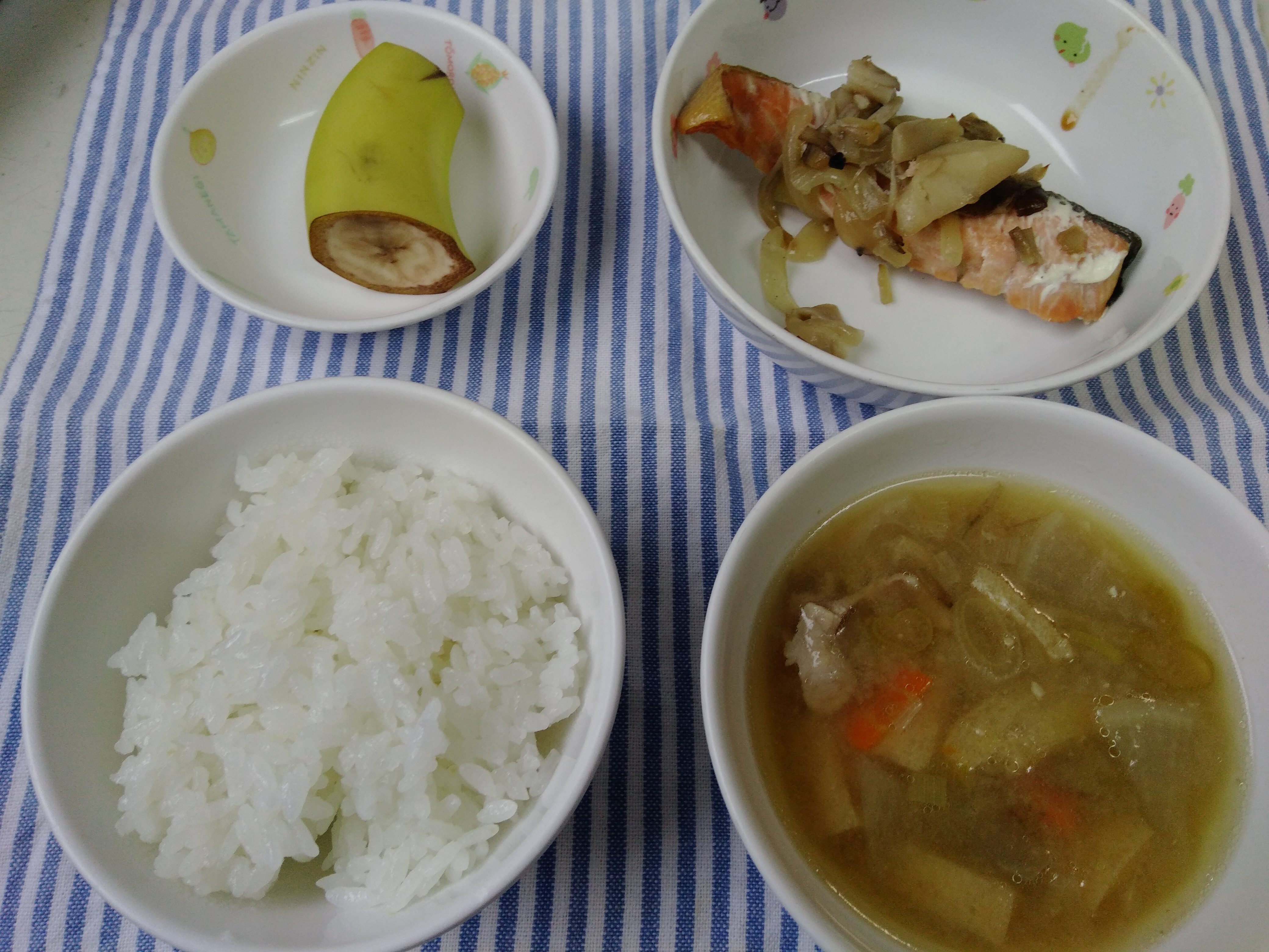 ご飯 鮭のホイル焼き 豚汁 バナナ