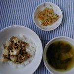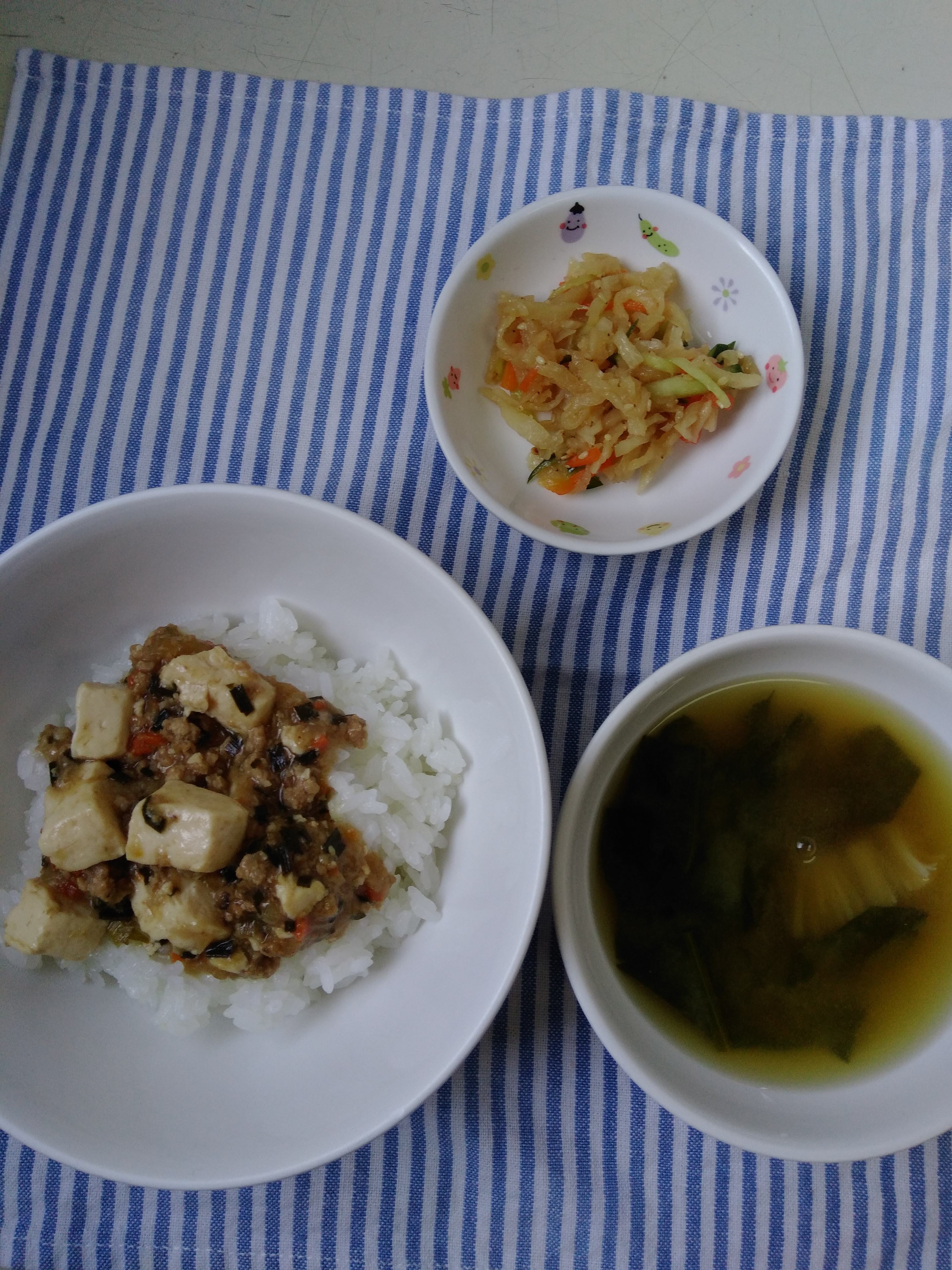 麻婆豆腐丼 切干大根のサラダ すまし汁