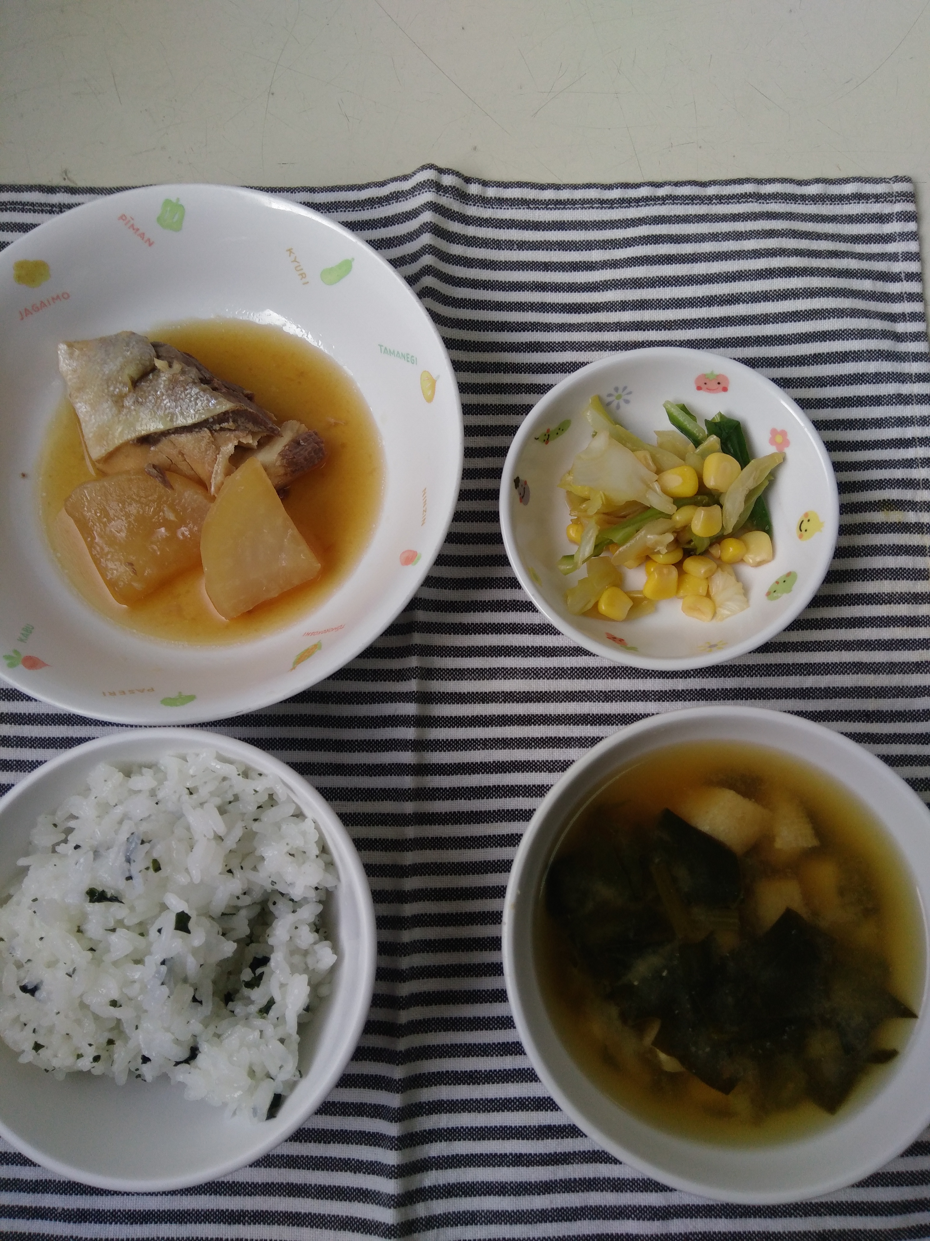 わかめご飯 ぶり大根 中華和え みそ汁